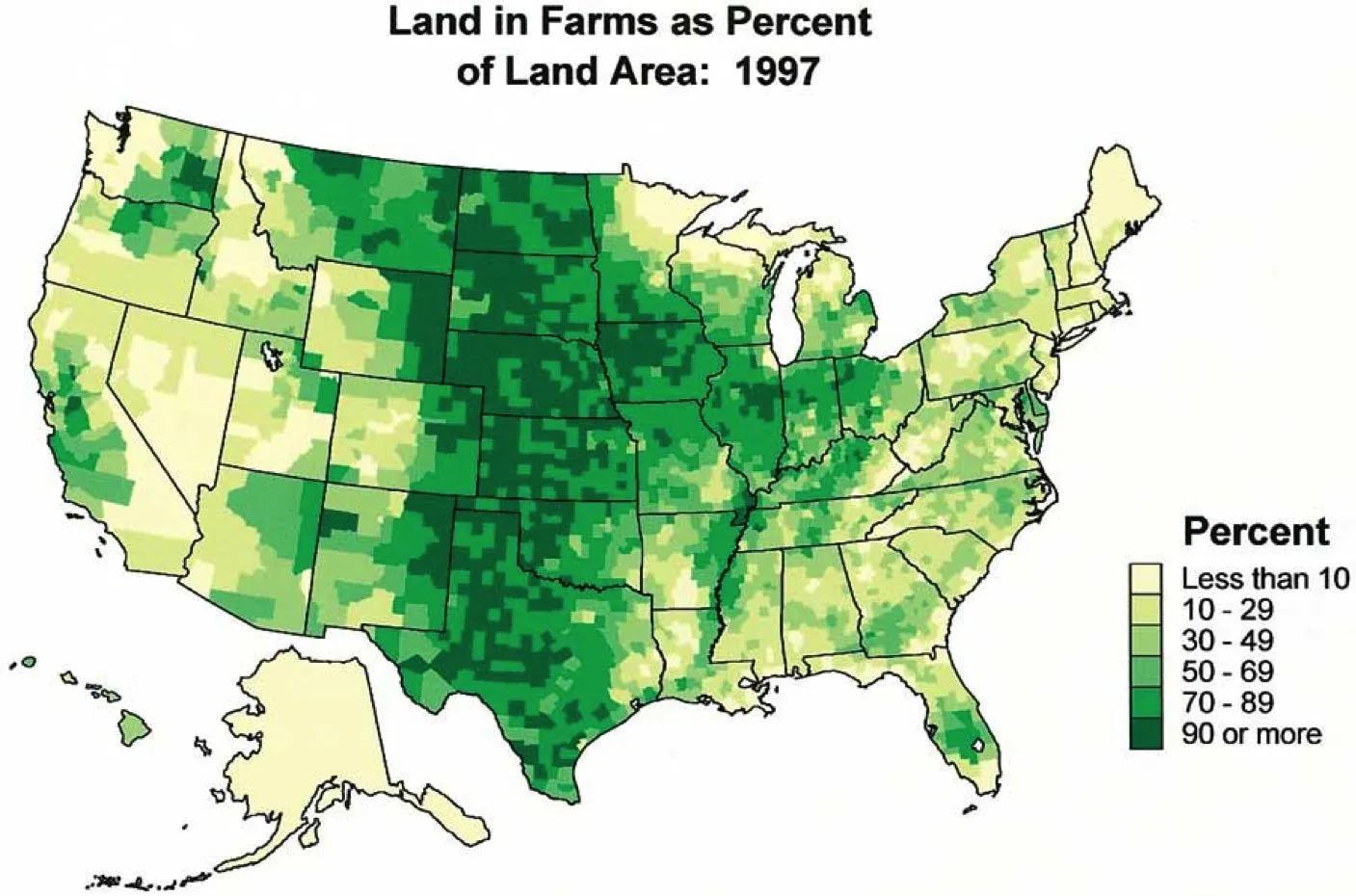 美国农庄用地比例。美国总面积虽然比中国少,但耕地比中国多很多