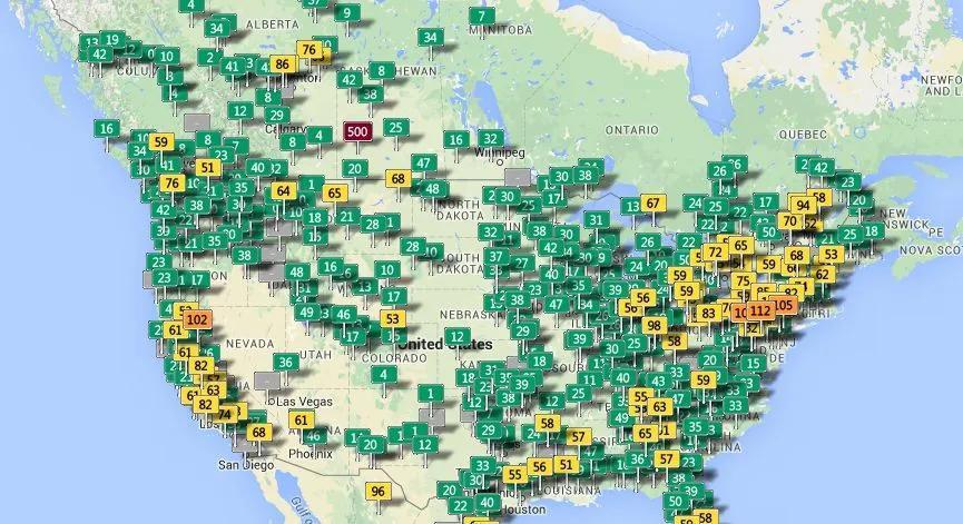 美国 PM2.5 地图(2005年任意3月某天)