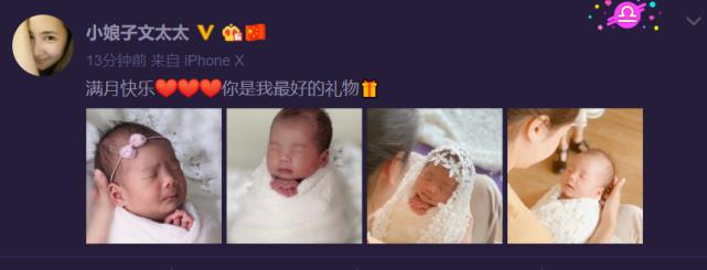 10月6日,边潇潇凌晨在网上晒二胎初生照庆祝孩子满月,并配文:“满月快乐,你是我最好的礼物”,这是边潇潇产后首次官宣二胎降临的消息,恭喜再添一个家庭成员。