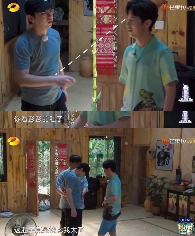 最有代表性的就是我们的彭彭了(彭昱畅),一点也不掩饰胖胖的肚子