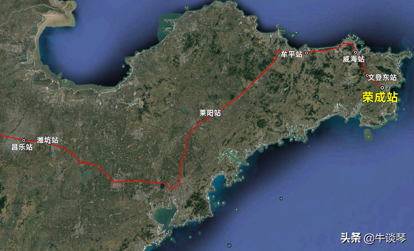 发站:荣成(07:24)到站:济南(11:38)餐车:05里程:637公里二等:196.5一等:314历时:04时14分注:文中所有线路图均为作者“牛谈琴”原创绘制,如需转载请注明出处!