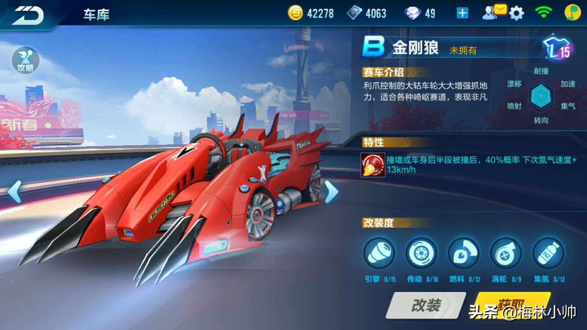 1、先改引擎。深改度达到7 以上时最为适宜。深改之后,金刚狼的车速能够突破220公里/小时。