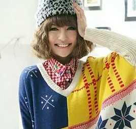 大脸的齐刘海泡面卷发发型,再另上一个漂亮的小帽子,下面的头发显得稍蓬松大一点,弯弯双眼,特别的青春。