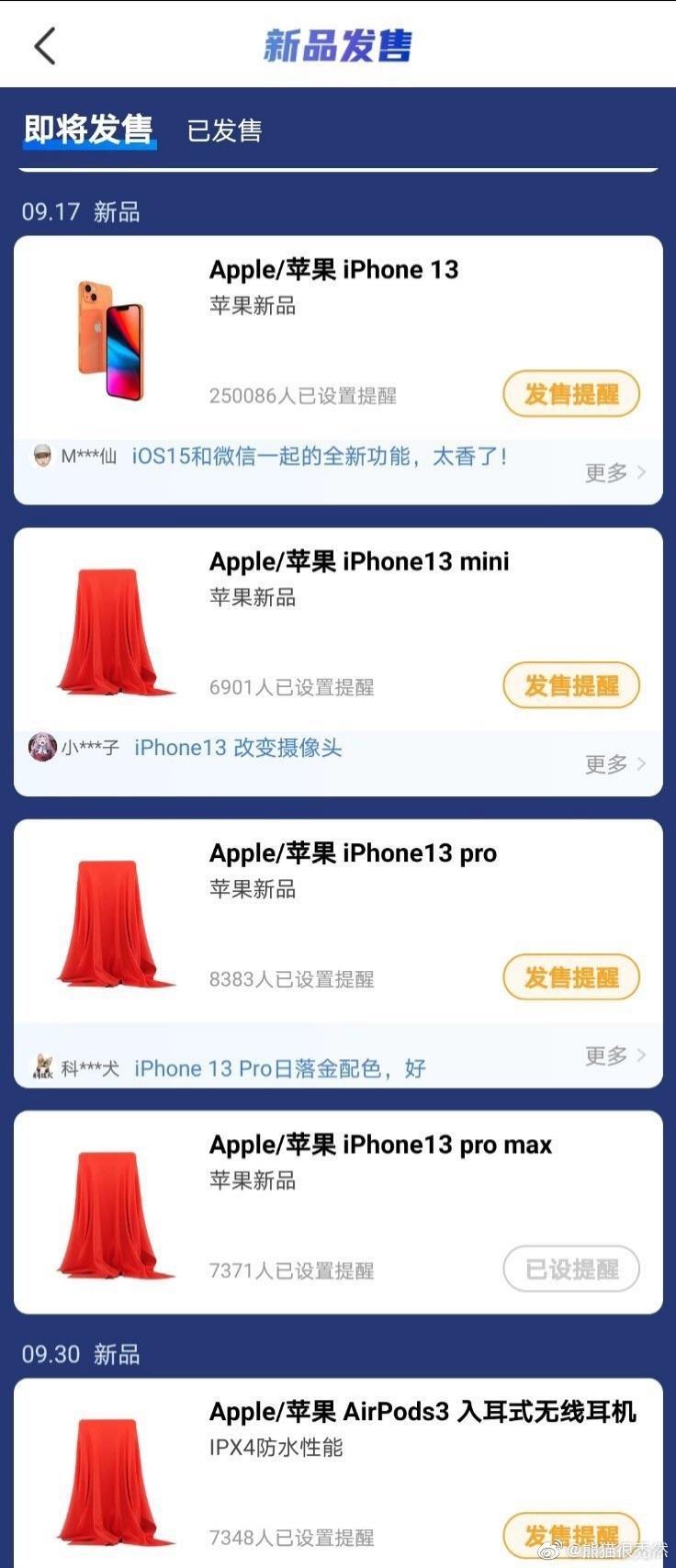 据博主@熊猫很秃然 爆料称,苹果将在9月15日凌晨正式召开秋季发布会,主角自然是iPhone 13系列,而且也有电商平台泄露了iPhone 13系列的发售日期,将在9月17日正式发售,包括iPhone 13/13mini以及iPhone 13 Pro/ Pro Max四款机型。