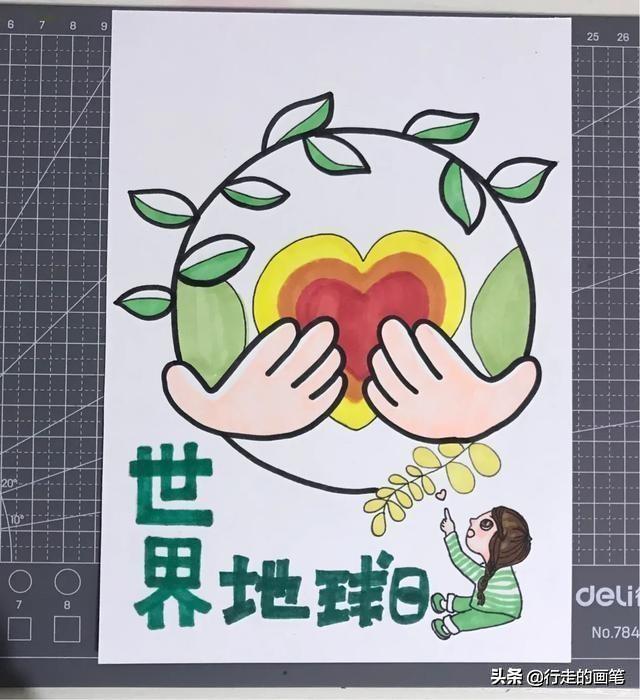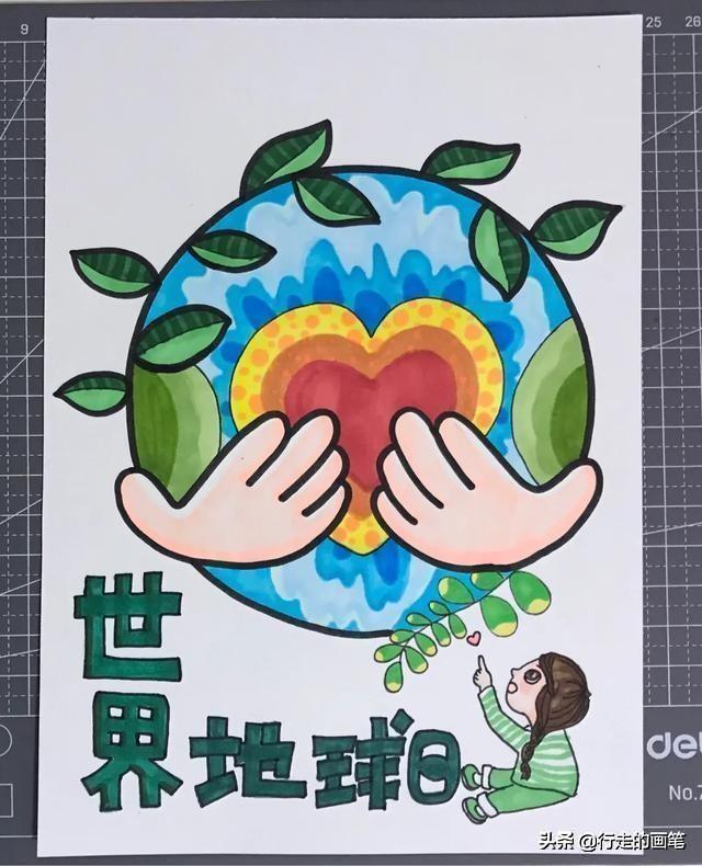这样,世界地球日宣传画就画完了,小朋友快快拿起画笔,绘画出你的宣传画吧。