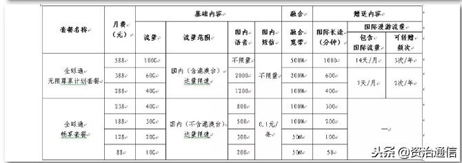 中国移动“全球通”资费套餐来啦~