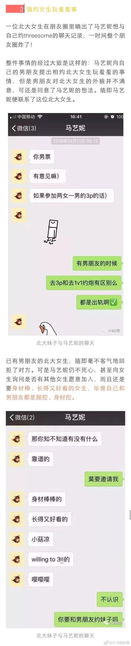 清华大学马艺妮帮男友约3p事件始末聊天记录截图