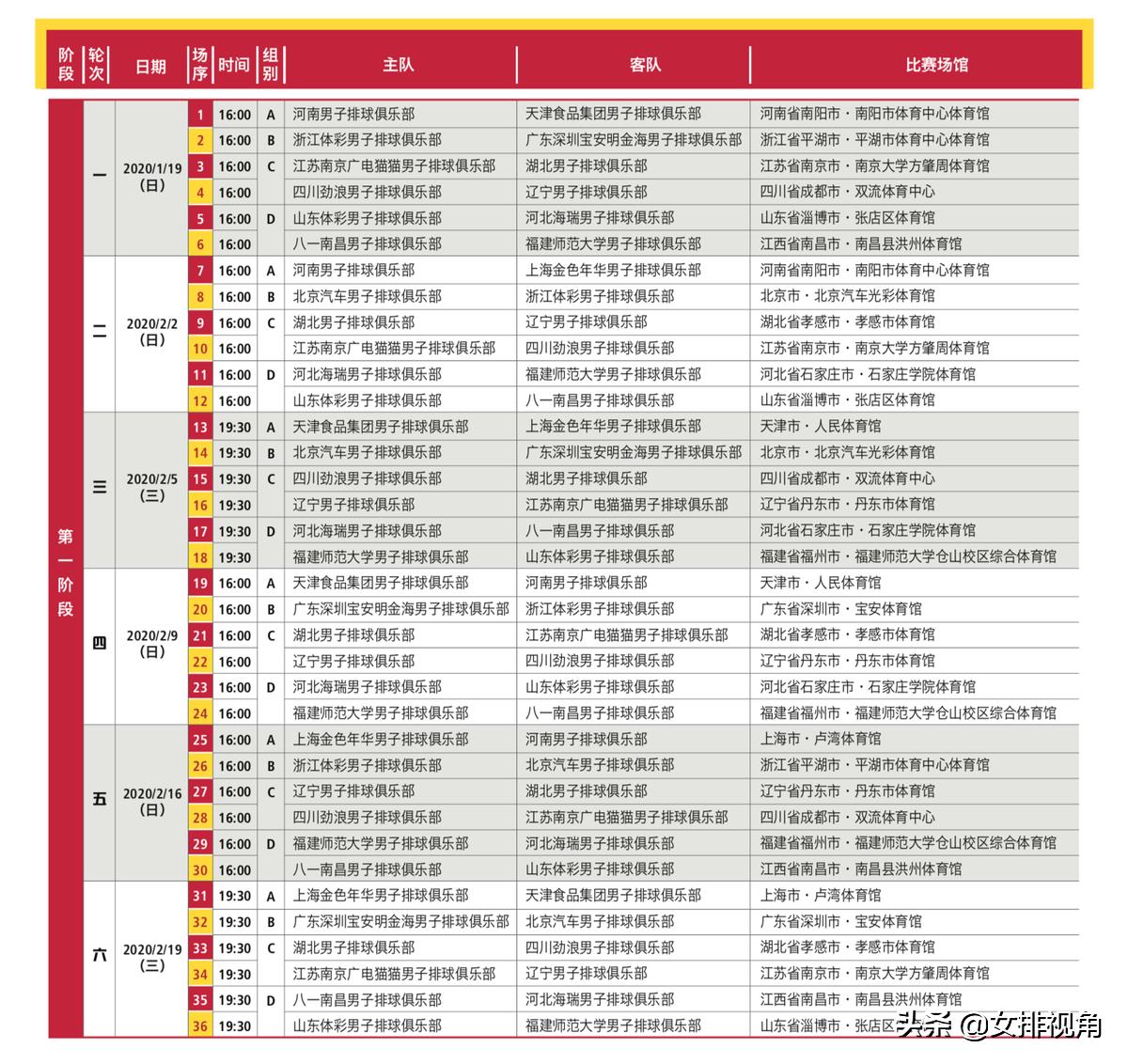 中国男排超级联赛,分组规则及赛程预告,19号直播平台推荐