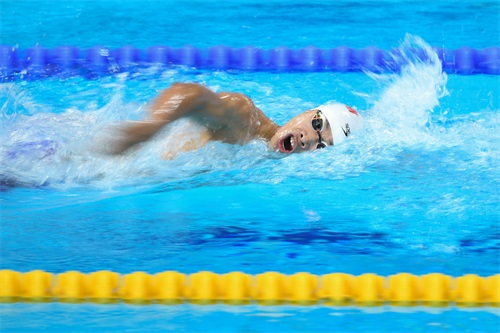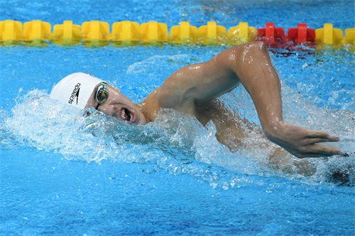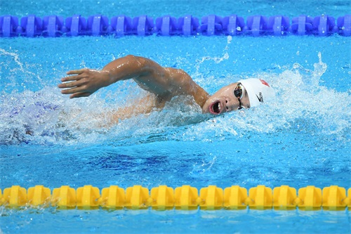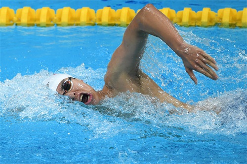 当日,第十四届全运会游泳项目男子800米自由泳预赛在西安奥体中心游泳跳水馆举行。