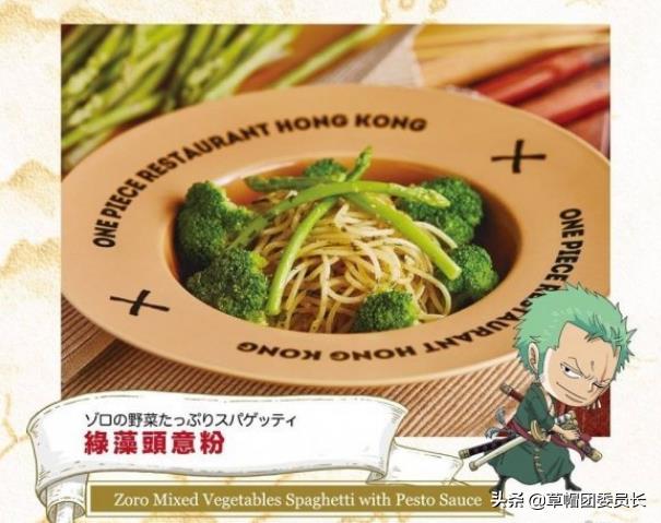 第三家,香港店。终于来到我们的大中华了,这家店是18年新开业的海贼王主题餐厅,除了别具一格场景,店内的菜品也十分的有意思,每个菜品都对应着动漫中的人物角色,就拿索隆来说,他的特制菜品是"绿藻头意粉"(西蓝花+pesto酱),菜品如此饮品更是如此,不仅有人物特调,使用的杯子上面也有特定的人物角色,喜欢归喜欢临走可不要想着带走哦!地址:龙红磡黄埔新天地5及6期AEON STYLE黄埔地面G01号铺,营业时间是早上11点到晚上10点。