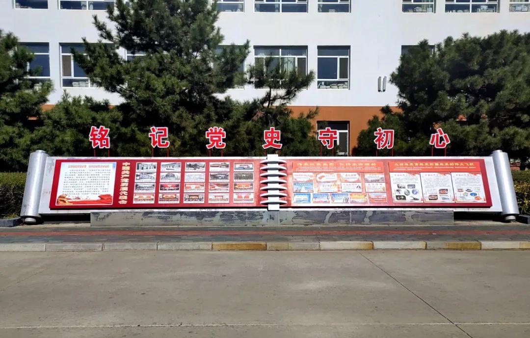 结合学校基础设施、合理规划,精心营造物质文化。依托英才路打造的党建宣传阵地,引导党员干部铭记党史守初心、高举旗帜担使命。全体师生从党的百年伟大奋斗历程中汲取前进的智慧和力量,提高支部规范化水平,助推学校工作快速发展,率先垂范,发挥党员先锋模范作用。党的教育方针图版、学风教风校风雕塑,与英才路灯牌上的优秀学子交相辉映,以无形的力量振奋师生精神,激励师生斗志,引导师生行为。