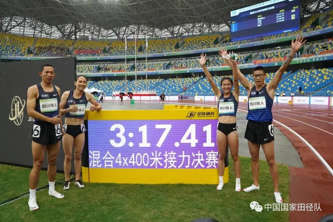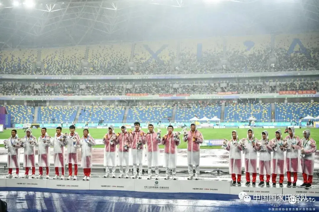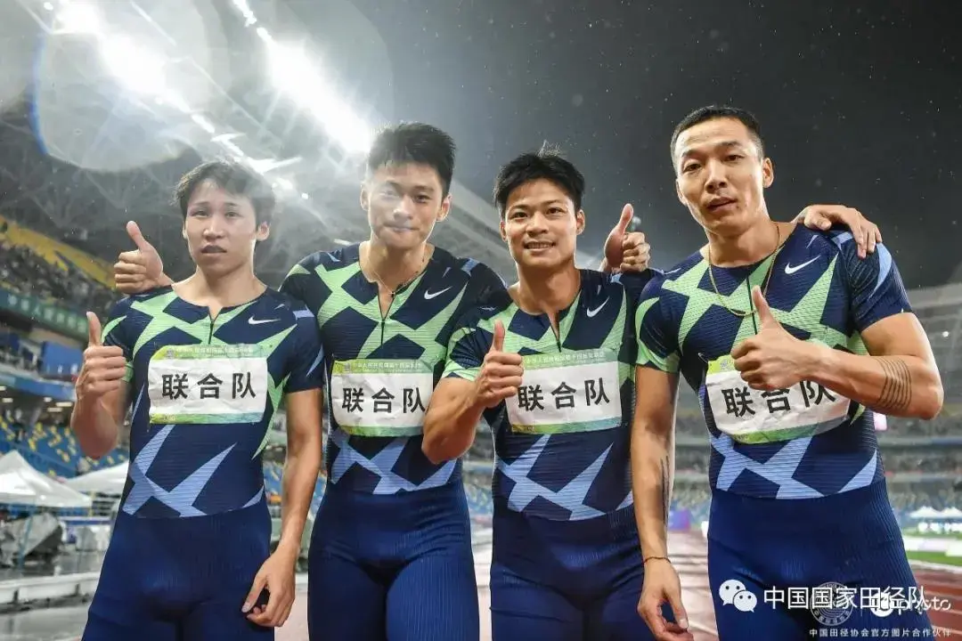 9月24日进行的男子4×100米接力赛中,由东京奥运接力成员汤星强、谢震业、苏炳添和吴智强组成的联合队以38秒50拿下冠军。