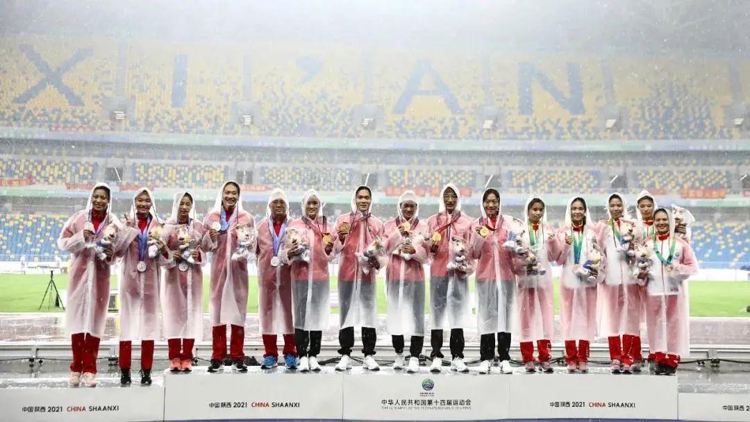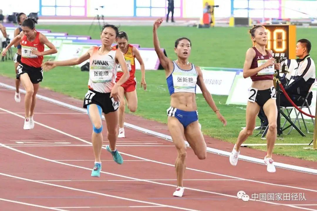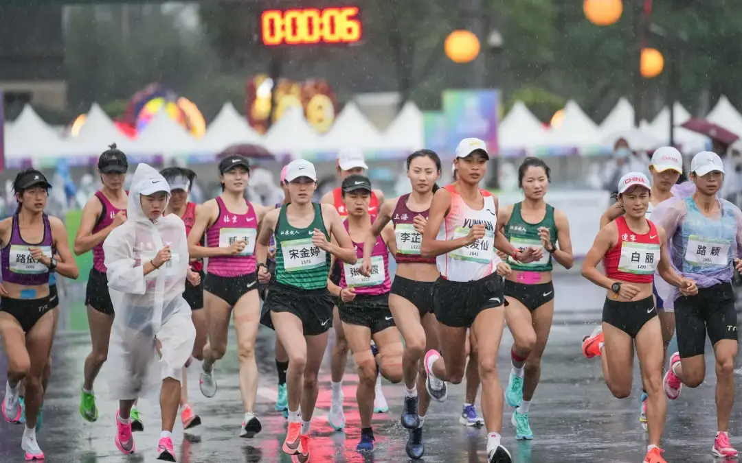 马拉松是本届全运会田径赛事的最后一个项目,因为天气原因,59名运动员在大雨中开跑。女子比赛率先开枪,最后冲刺阶段,三名领先的选手你追我赶,之间差距非常小,最终张德顺以2小时32分31秒夺得金牌,李芷萱以2小时32分34秒仅仅3秒之差屈居亚军,河南选手路颖跑出了2小时32分38秒,与张德顺仅差7秒夺得第三。