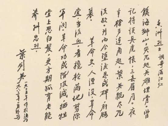 这首诗是写在1924年广东革命时期,叶剑英讨伐叛军参加作战,而新编团留守香州时被杀害。