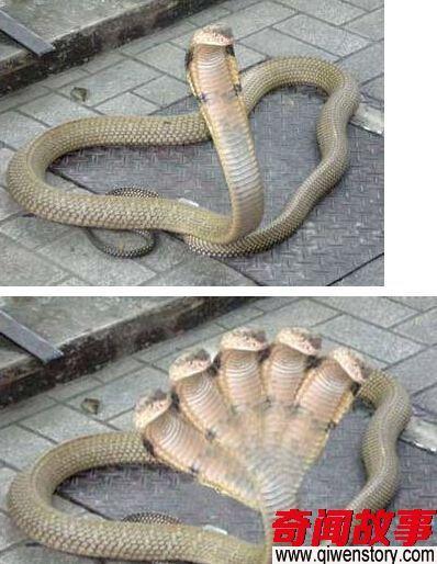 而我们好心的ps高手蛇友,为了吸引大家的眼球,如实就ps出了颈部张开的五个头,这样看起来更加的霸气、奇怪、奇异,引起了网上疯传是显而易见的事情了。