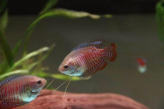 还有一个别名叫做“喷水鱼”,因为会到水面吐水玩而得名,红丽丽鱼虽然性情温和,但两条丽丽在一起的时候,常常打架,性情活泼又爱守地盘的丽丽就喜欢打打闹闹,在状态好的情况下,通体会变成娇艳的红,连鱼鳍都是红灿灿的,两根鱼须前后摆动。红鱼鳞映射着鱼灯的光,不论从哪个角度看,都是那么美。