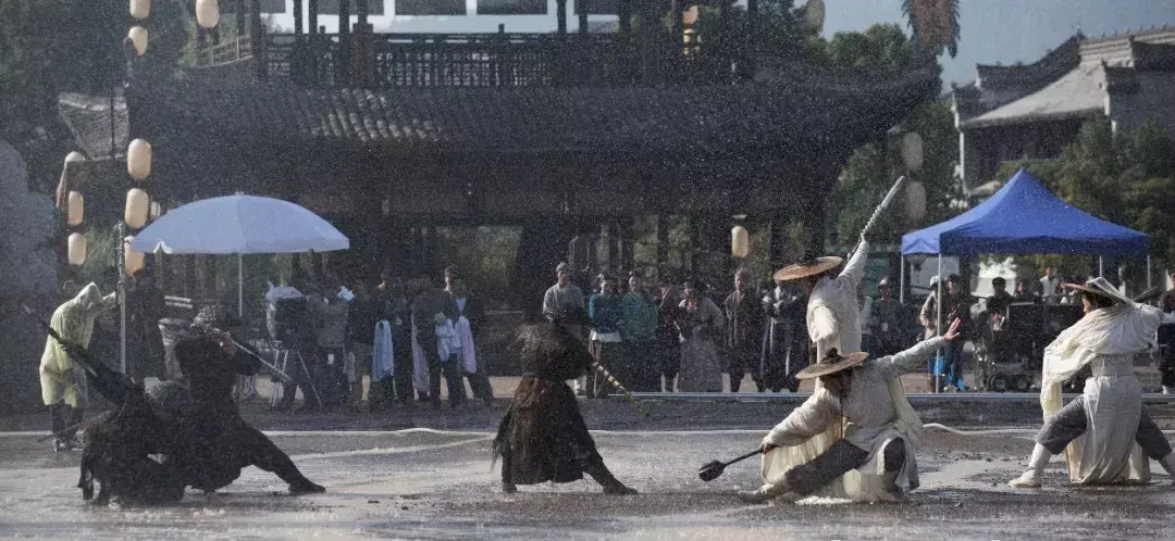 热搜上一段视频最近挺火,配文“群演在片场把主角杀了”。