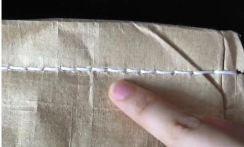 2、然后我们再拆线的时候,只需要死记住这个妙招:“单线向我,从右往左”。意思就是单线的一面正向着自己,用剪刀剪掉线头部分,我们拆米袋一定要从右往左拆。