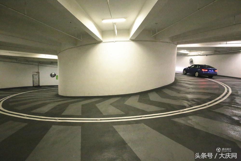 这是B3层停车库,干净明亮,看不出有什么异样,其实这层离地面已经7楼高了,下面还有一层停车库。