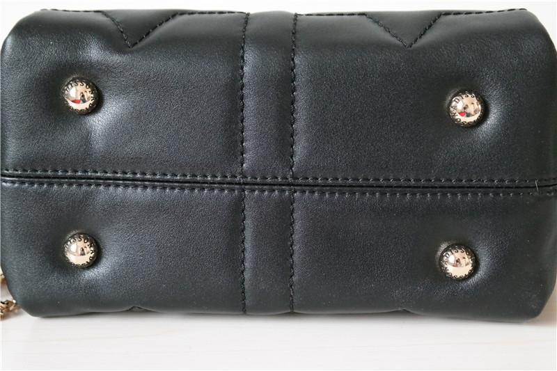 精致的车缝线装饰包面,独具匠心,形成的图案远看有点像香奈儿的LOGO,既有层次感,也很青春活泼。喜欢这款包不仅是因为其令人啧啧赞叹的手工与工艺,还因为各个细节均照顾入微的妥贴,我一直都很喜欢这种底部带铆钉的包包,比较耐磨抗刮。因为这种皮肩带的包包不适合长时间的挂起来,更多时候都是摆在哪里,这个时候,地下的铆钉就显得格外重要了,它可以延长包包的使用寿命,永葆包包的青春靓丽哦。