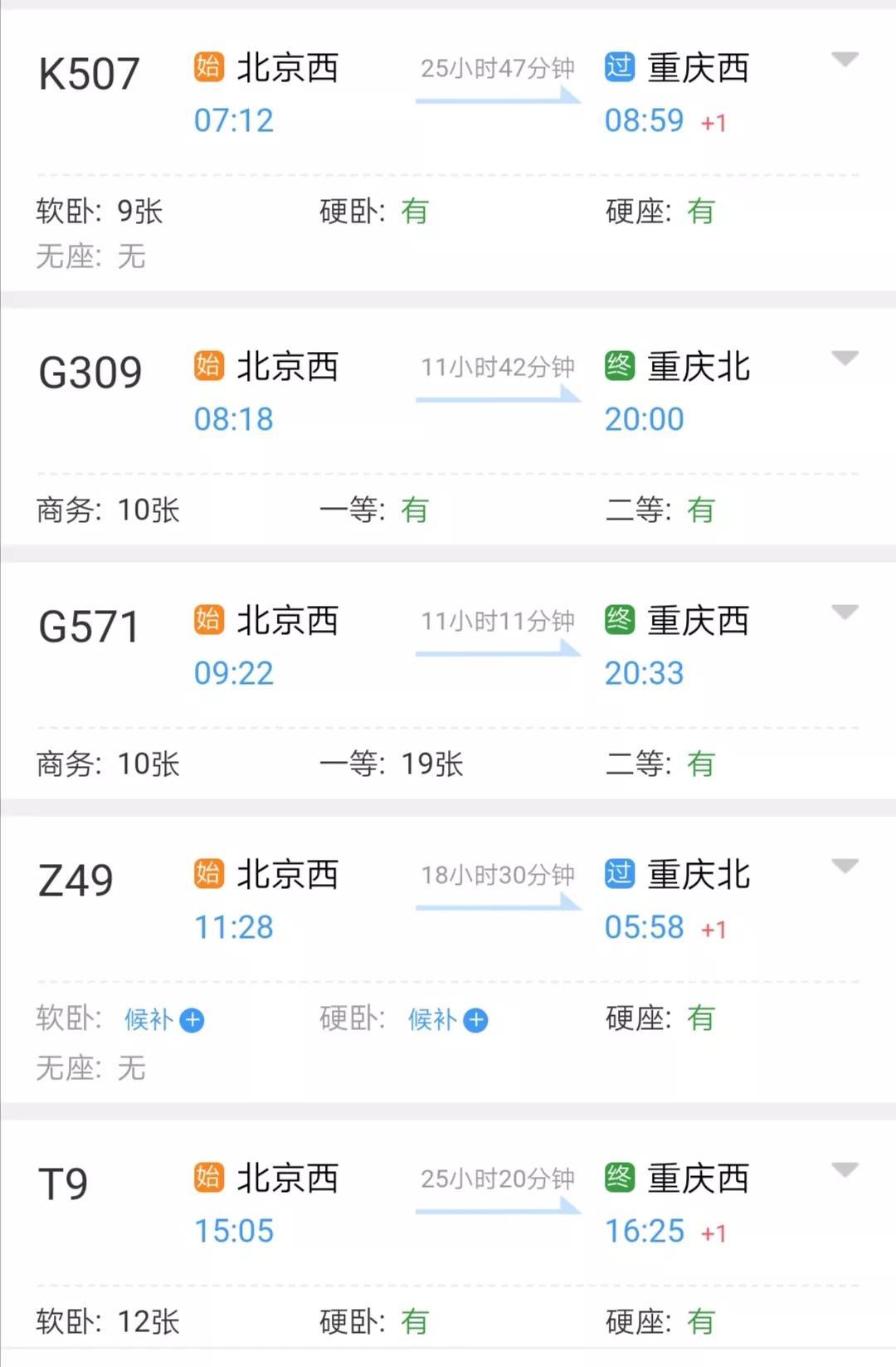 近两年由于工作原因,频繁往返于重庆和永川之间,今天闲来无事,无意翻看了下自己的订票记录,往日的奔波生活不禁历历在目,想着曾经在北京出差的日子,便情不自禁搜索了下北京到重庆的车次。