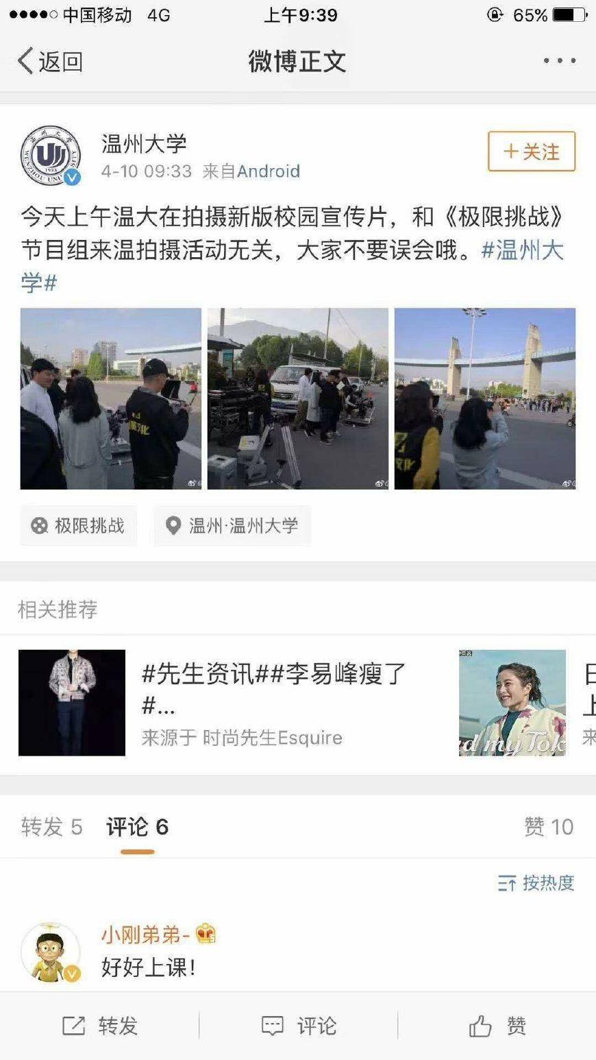 截至小编撰稿前,《极限挑战》节目组和其他单位也没有发布声明证明节目组的确来到了温州大学城。