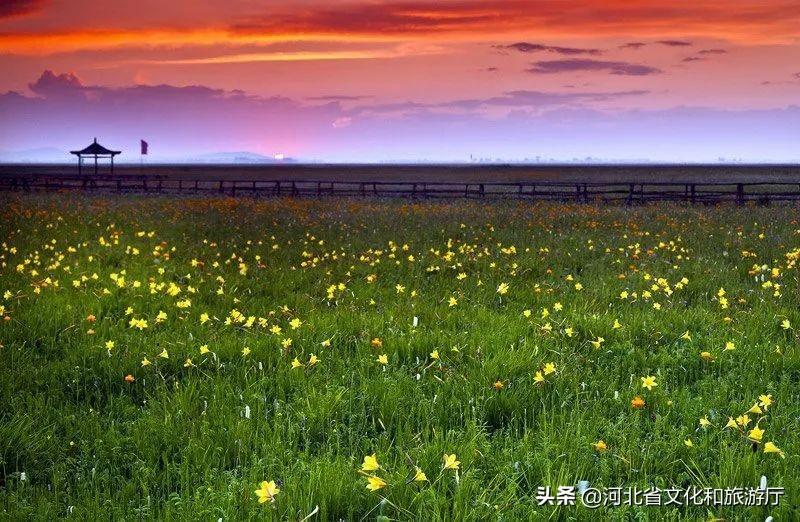 素有“华夏第一草甸”、“华北最美花海”之美誉的五花草甸宛若一块瑰丽夺目的五彩石镶嵌在坝上沽源的大地上。这里有一望无际的最美花海,高浓度的色彩是五花草甸盛夏时节的主旋律。7月底8月初,五花草甸迎来了一年中最美花期,数千亩的草甸上,盛开着黄色、紫色、粉色、白色等五颜六色的鲜花,繁花似锦、美艳如画。酷热难耐之际,走进沽源,徜徉在缤纷浪漫的花海天堂,感受色彩斑斓的童话世界,倾听神秘美丽的传说故事,此情、此景着实令无数游人为之痴迷、向往。