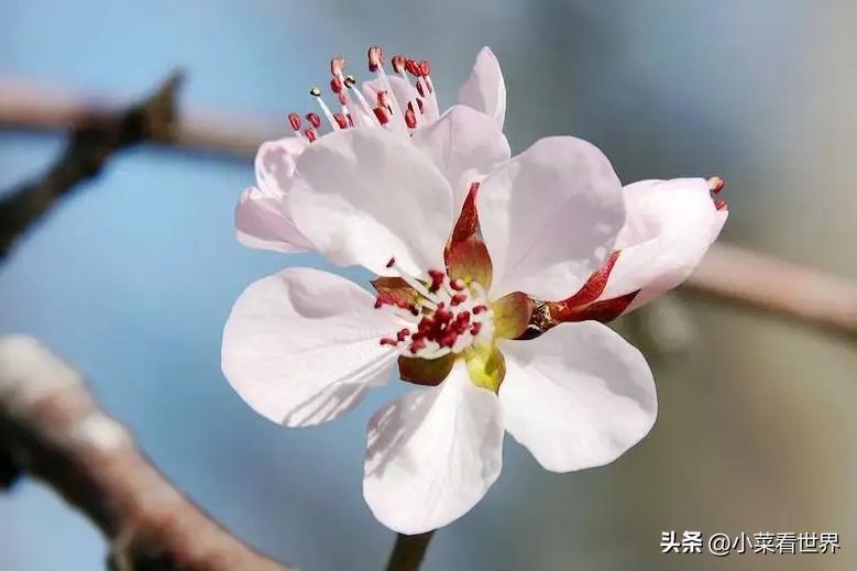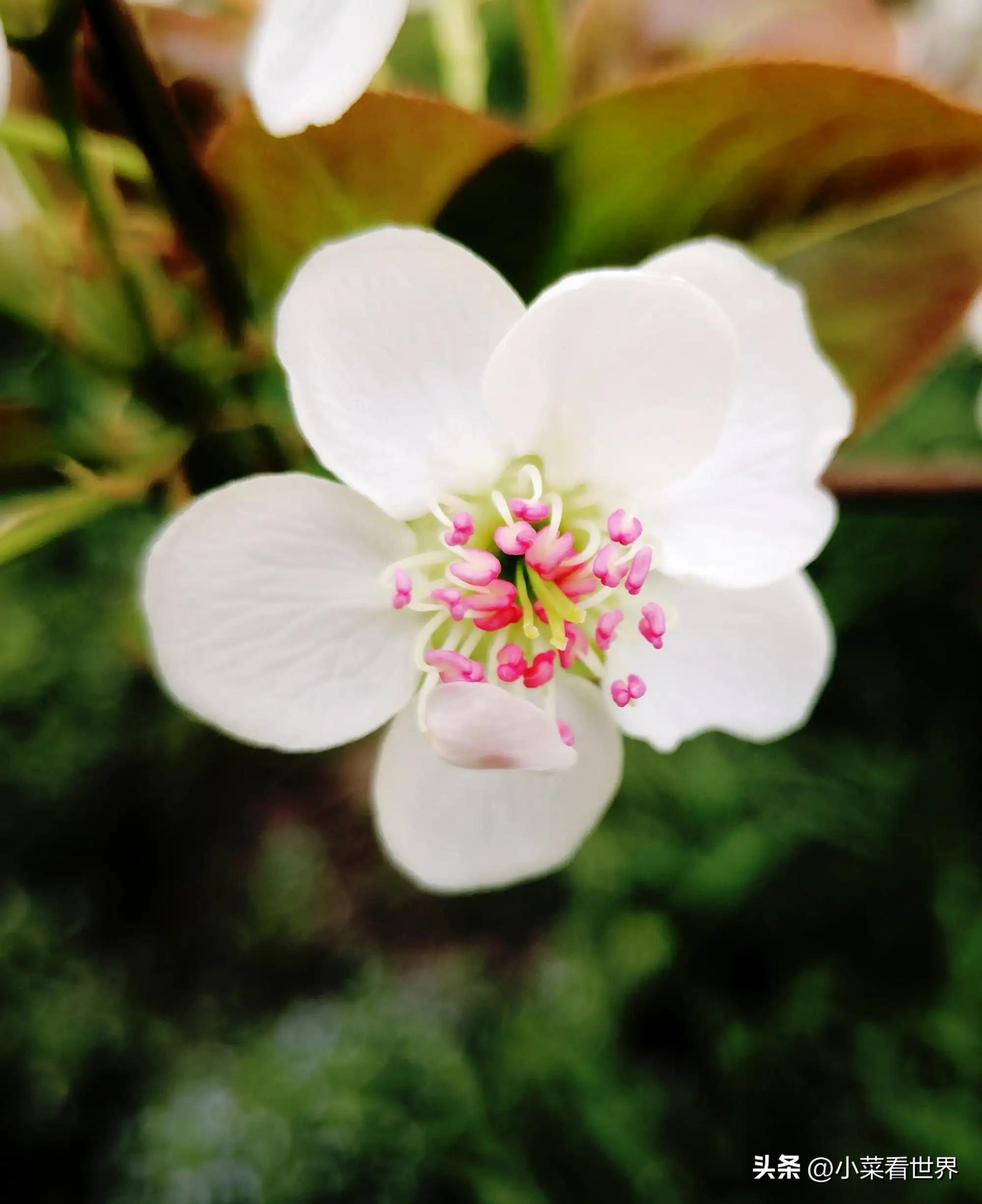下图这是中国的梨花。花瓣下端是细窄的收缩造型。