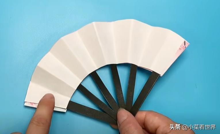 当然也有例外:例如把扇骨的边缘和折纸的边缘重叠。