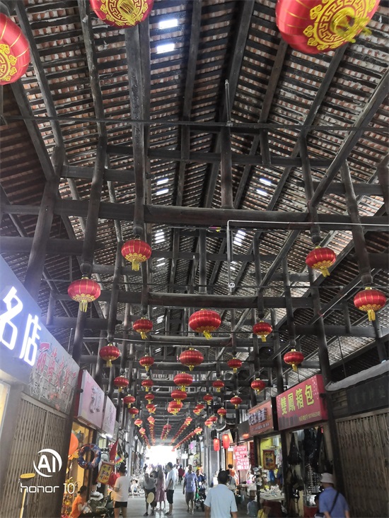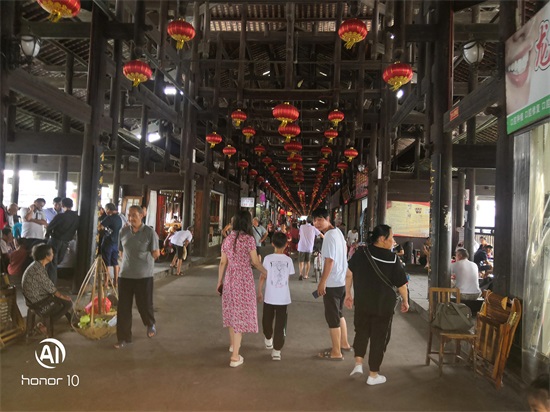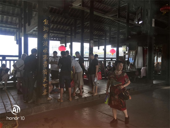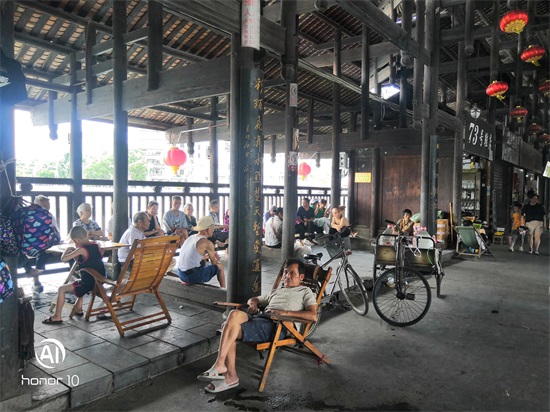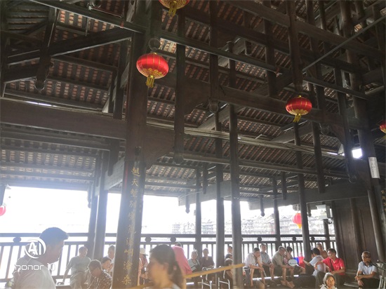 夏天的风雨桥特别凉爽,每当盛夏来临,在桥两边廊坊乘凉的人或站或座或斜倚,或三五成群或独自宁神,衣衫与桥廊顶的红灯笼一样,随风起舞。桥上乘凉的人,有的吹拉弹唱,有的打牌下棋,还有吹牛闲聊的或闭目养神者,好一幅祥和欢乐而安宁的盛世景象。据说夏日的龙津风雨桥,乘凉的人从清晨到半夜,几乎都是“高朋满座"。
