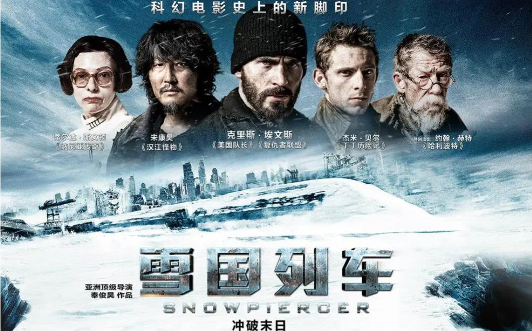 《雪国列车》改编自获得1986年昂格莱姆国际漫画节大奖的法国同名科幻漫画原著,由韩国著名导演奉俊昊执导,韩国著名导演朴赞郁担任制片人,克里斯·埃文斯,宋康昊,蒂尔达·斯文顿,杰米·贝尔,艾德·哈里斯领衔主演。故事讲述一场突如其来的气候异变让地球上大部分人类灭亡,在一列没有终点、沿着铁轨一直行驶下去的列车上,载着地球上最后幸存的人们,“雪国列车”成为了他们最后的归宿、最后的信仰也是最后的牢笼。