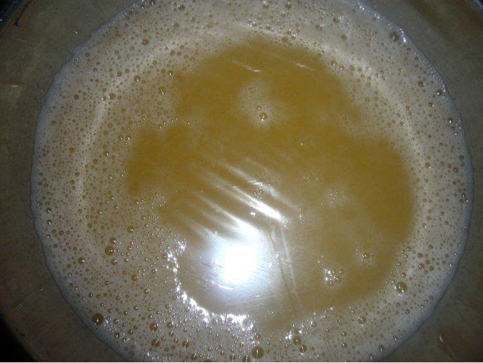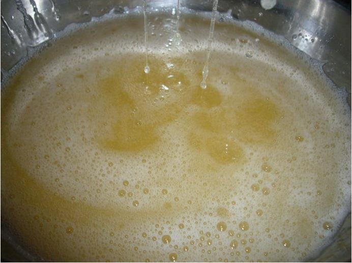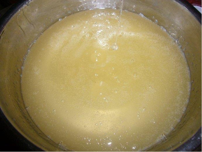 水越来越浓稠了,因为是第一次做,也不知道浓到什么样就可以了,不过揉种子的功夫很累人,本人拍照,当家的在忙碌,他都出一身汗了。