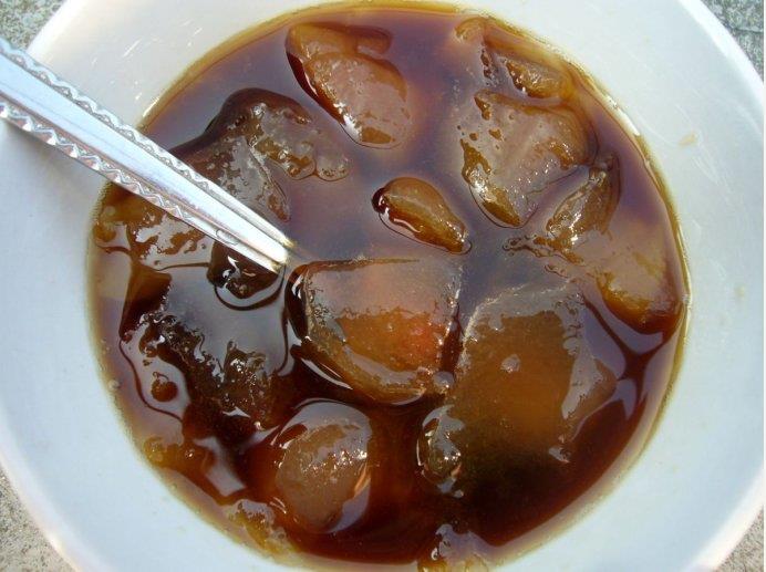 秋老虎的天气,加点红糖,来点酸梅汤拌一拌,冰爽!如果没有酸梅汤,就退而求其次,白醋吧。