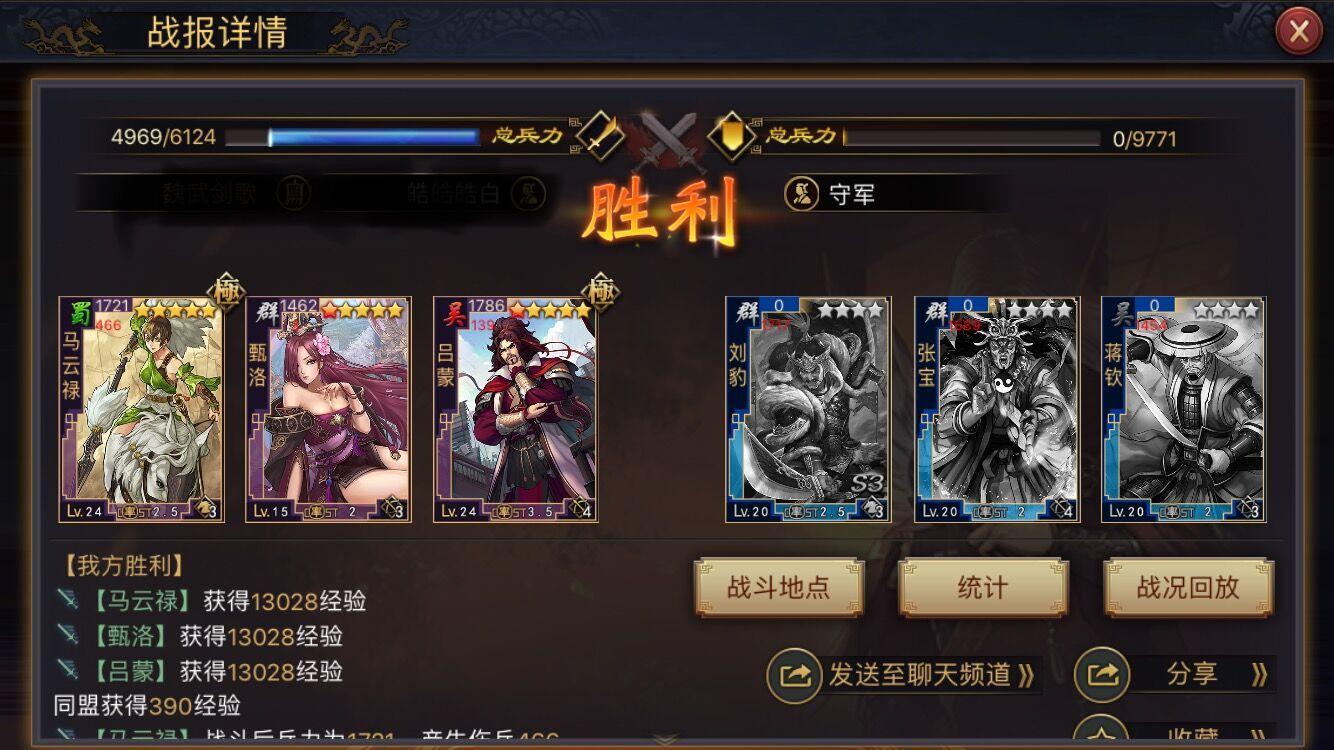 5级地 6本三武将 第一梯队5500兵力可打,建议7本6500以上再打,5地阵容如下: