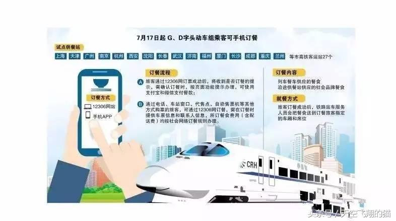 7月17日开始,中国铁路总公司将在全国27个主要高铁站推出动车组列车互联网订餐服务!通过手机,不仅能预定高铁列车上的餐车盒饭,还能预定沿途的社会品牌餐食,并享受送餐上车的服务!