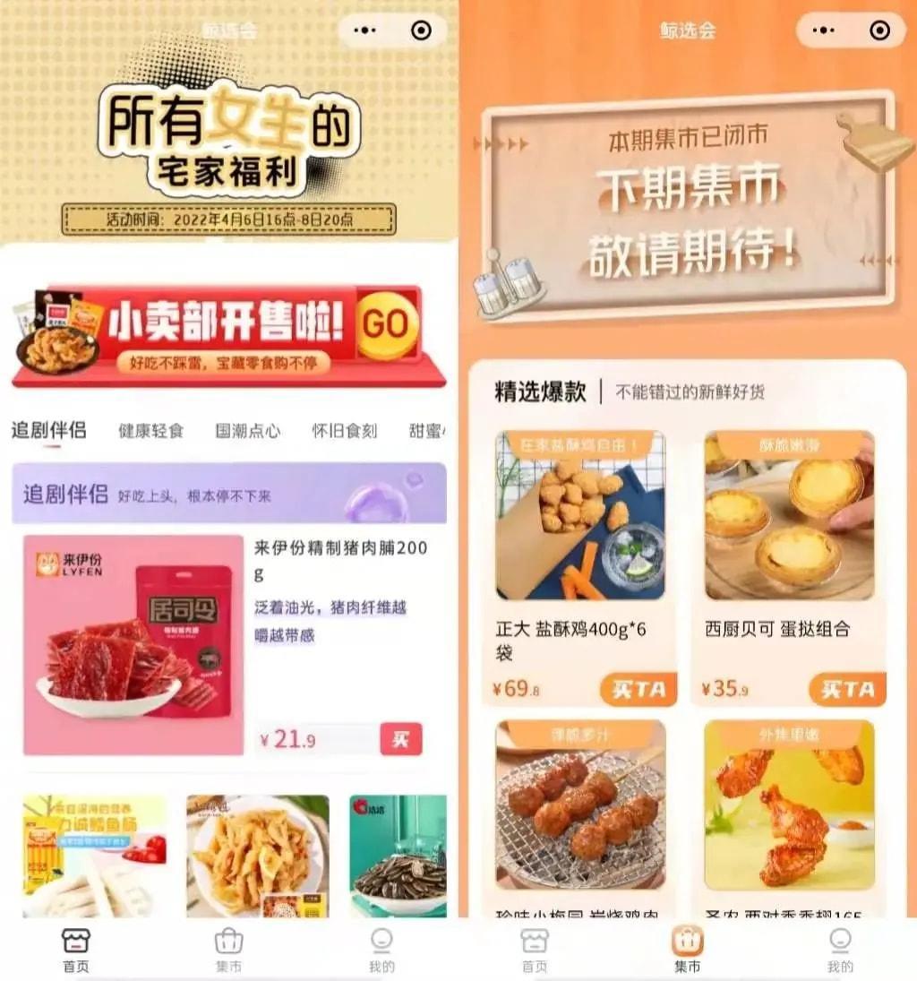 美ONE在微信上线“鲸选会”小程序,主要售卖各种各样的零食,共有“首页”、“集市”、“我的”三个一级入口。点击首页中的产品链接,会弹出进入“京东好物街”的提醒,部分产品会跳转到品牌小程序。也就是说,“鲸选会”是通过挂外部链接来售卖商品的,而且大部分是通过京东小程序。淘宝直播的招牌与京东合作,这不是在“打脸”淘宝吗?