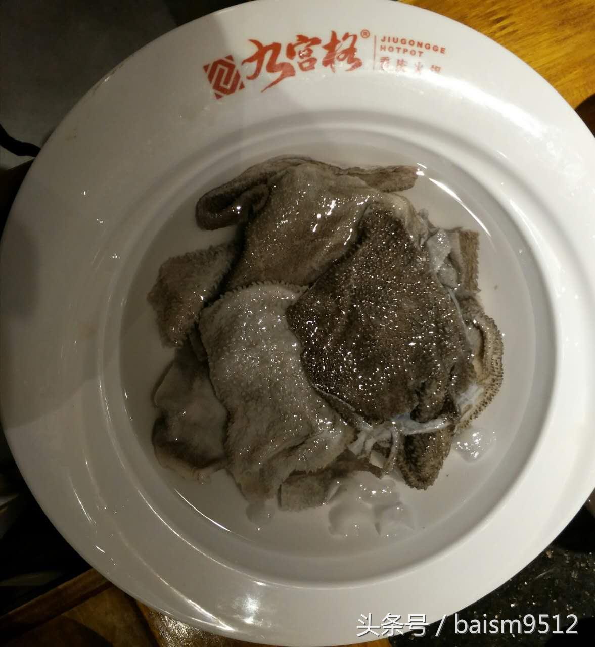 手撕鲜毛肚。收拾的很干净。用筷子夹上在滚沸的锅里一涮就捞出来,否则就老了。九宫格招牌菜