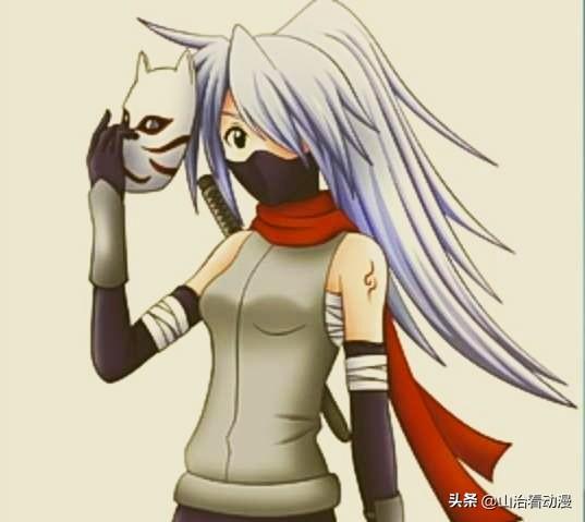 卡卡西是木叶白牙的儿子,他从小就是一名天才,12岁成为木叶上忍,卡卡西的天赋继承了木叶白牙的血统。木叶白牙在卡卡西小时候就自杀身亡了,卡卡西也没有得到木叶白牙的真传。卡卡西也非常悲惨,他与带土,琳是最好的伙伴,战争却剥夺了一切,带土战死,琳死在卡卡西的雷切下,卡卡西一直活在阴影里。他加入暗部,最后自己的老师也死了,要不是有凯在,卡卡西很可能黑化。卡卡西娘化,变成女生,一头长白发,戴着暗部的面具,这身暗部造型也很不错。