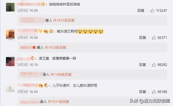 万能的网友纷纷"出力"帮取名,其中呼声最高的名字是"凌艾莉",网友们实在是太调皮了,简直今日的快乐源泉。