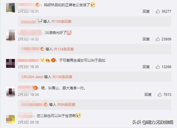 因为于晓光的转发,网友们更不淡定了,纷纷转向于晓光微博占据评论"妈呀,林品如的正牌老公发话了;您二胎也可以叫于世贤啊"。