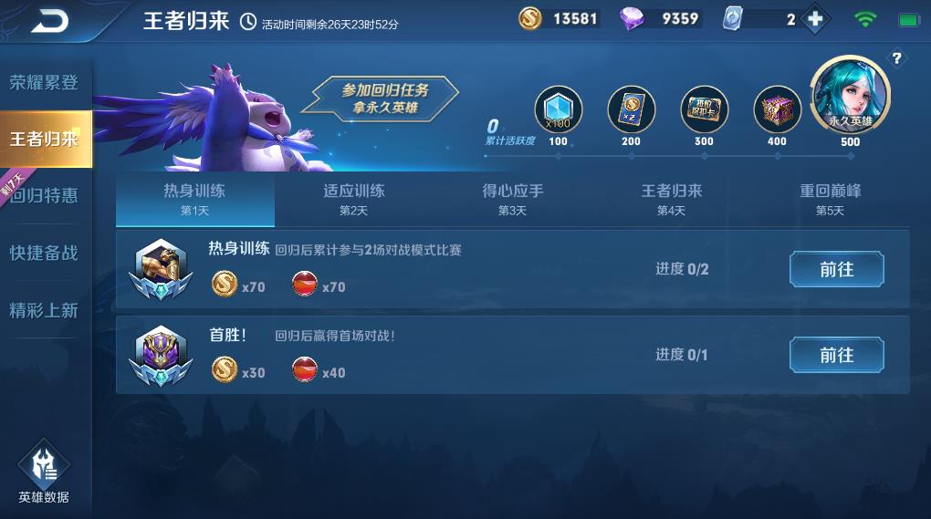 当然,小编也没离开半年,也就2个多月这样吧!虽然离开的时间不长,但也得到了回归的奖励,一般的奖励也就不提了,主要还是出现了2个特别的奖励。一个是荣耀累登,另一个是王者归来。