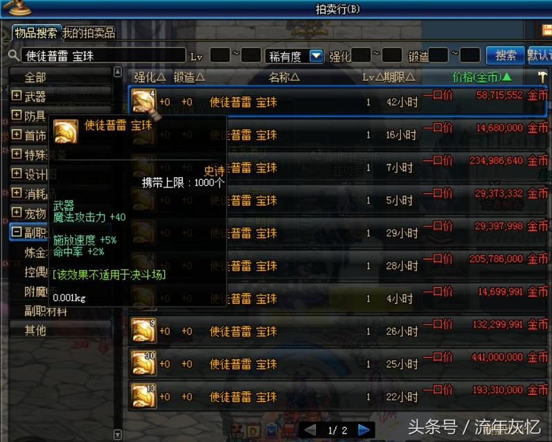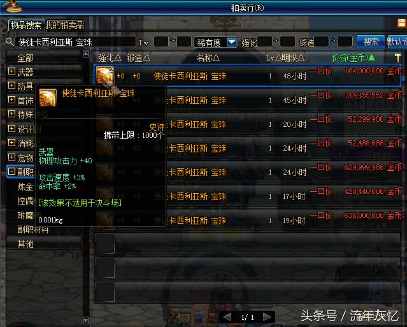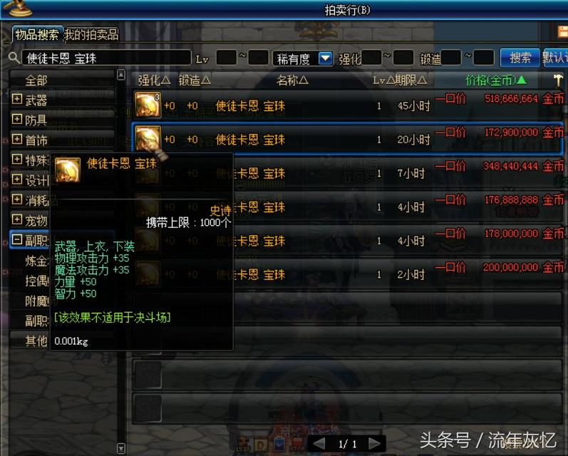 DNF使徒卡恩的宝珠都1.7亿了要不要这样啊 拍卖都要断货了