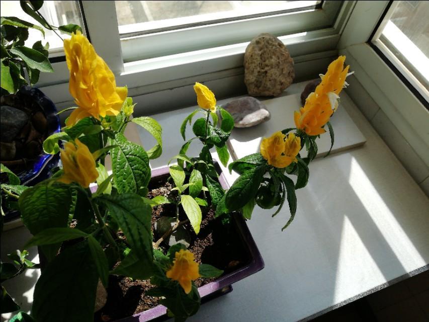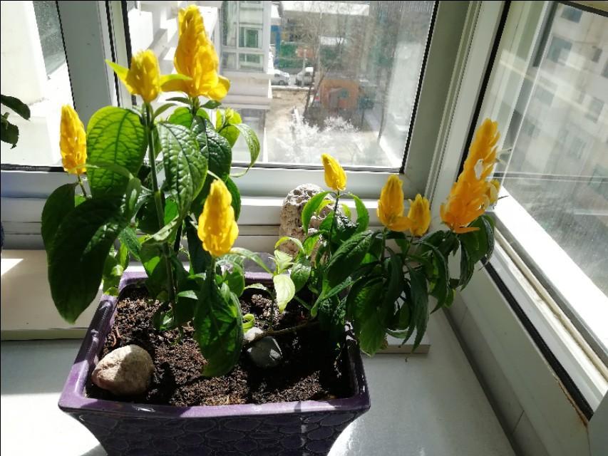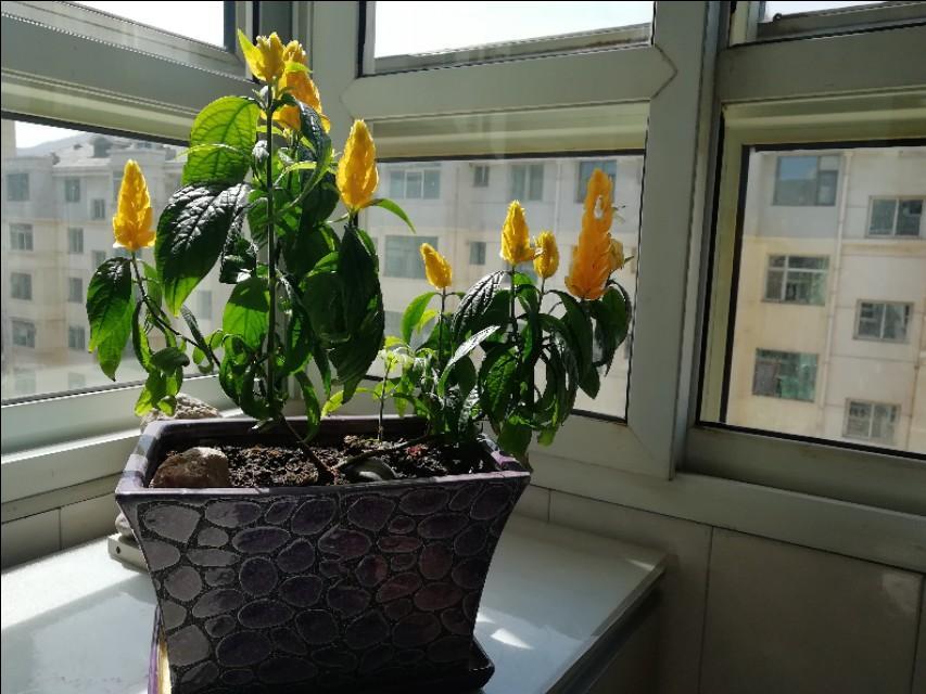 朋友送了盆黄金塔的小苗,拿回家时正值冬天,小小的两个枝丫,七八片略微发卷的叶片,很担心养不活,因为我养花水平很一般,别人说很好养的花我都养不好,但没想到这花很是争气,四五个月就新发了好多枝叶,并且开了花,长得相当不错。黄金塔,学名金苞花,寓意是富贵和财源广进,它的风水作用也很好,是家庭和谐的意思。它可以长到一米多高,比较适合家养,放到光照充足的地方,花开的会更好。