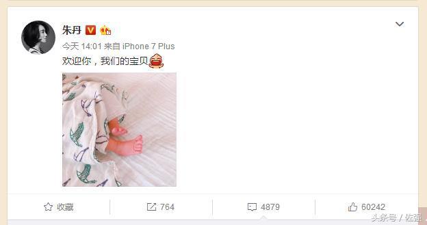 今天下午14:01,著名主持人朱丹通过微博宣布产女,并晒baby的一双小脚,配文:欢迎你,我们的宝贝。