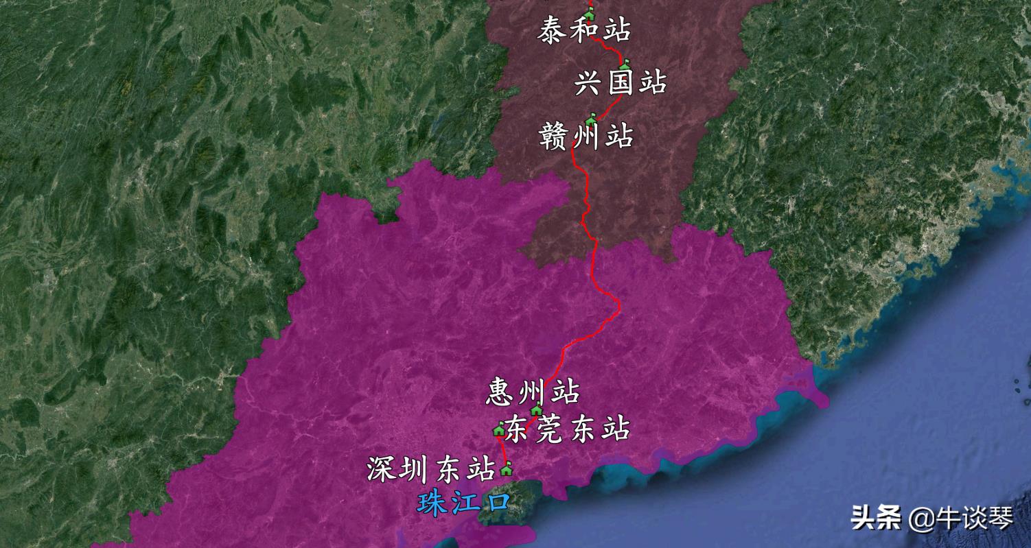 途经江西、广东两省,全程1057公里,运行14小时05分,共有12个停靠站:九江站、南昌西站、丰城南站、樟树东站、峡江站、吉安站、泰和站、兴国站、赣州站、惠州站、东莞东站、深圳东站。