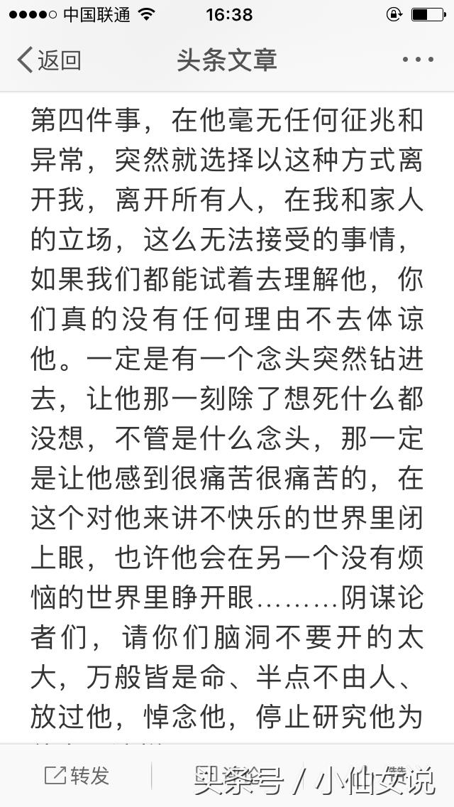 不管真假,斯人已逝,我们能做的只是怀念和祈祷。
