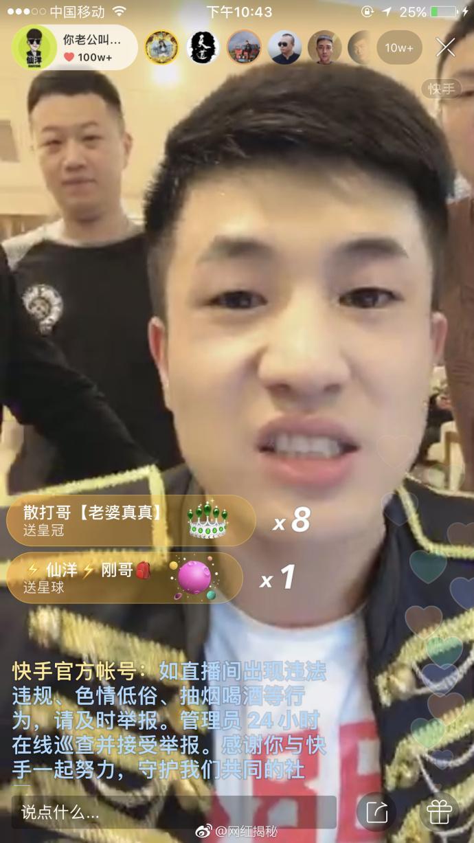 球球在快手仙洋直播间粉丝破千万,称邀请仙洋和本山大叔一起吃饭