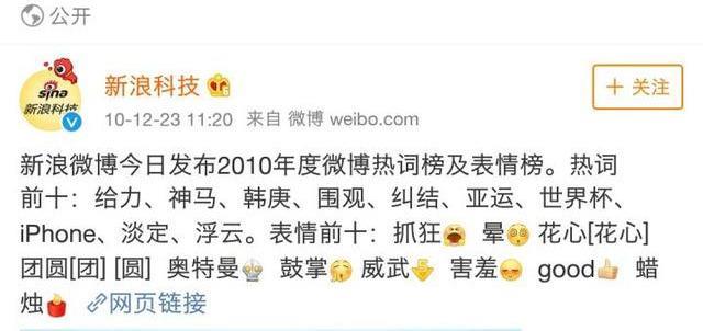 他发布的第一条微博,评论就高达四万,名字成为了2010年微博热搜的十大关键词。