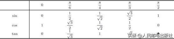 如果你想要计划参加一次微积分的考试(或者即使你没有这种想法),我的一点建议就是:请熟记常用角0, π/6, π/4, π/3, π/2的三角函数值。例如,如果不思考,你能化简sin(π/3)吗?tan(π/4)又会如何呢?如果你不能,那么,充其量你是想用三角形来求解,这只是在浪费时间。最糟糕的是,你求解过程中总不化简答案,这样就会丢失很多轻松得分点。解决的方法就是要熟记下表: