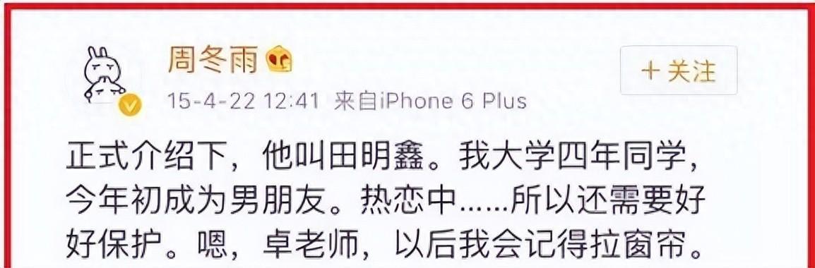 那就是直接官宣这段恋情,这也是到目前为止,周冬雨唯一公开承认过的一段恋情。